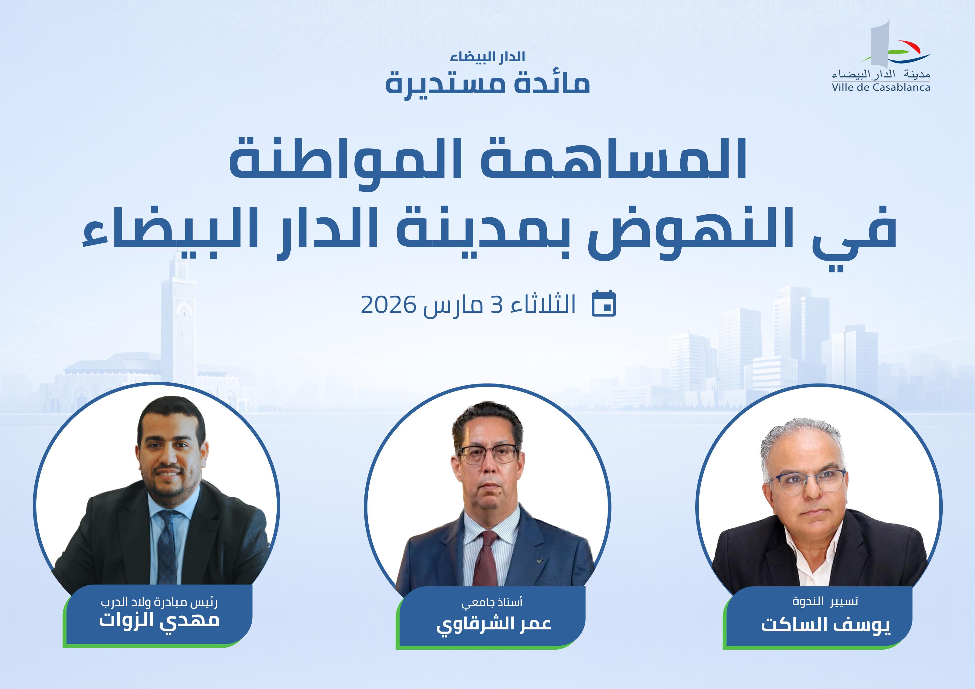 نظمت جماعة الدار البيضاء، يوم الثلاثاء 3 مارس، مائدة مستديرة خصصت لموضوع "المساهمة المواطنة في النهوض بمدينة الدار البيضاء"، بمشاركة أعضاء المكتب المسير وأعضاء مجلس جماعة الدار البيضاء.