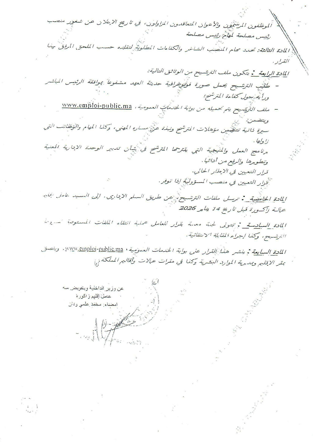 Casablanca Annonces قرار بشأن فتح باب الترشيح لشغل مناصب المسؤولية الشاغرة بعمالة إقليم زاكورة